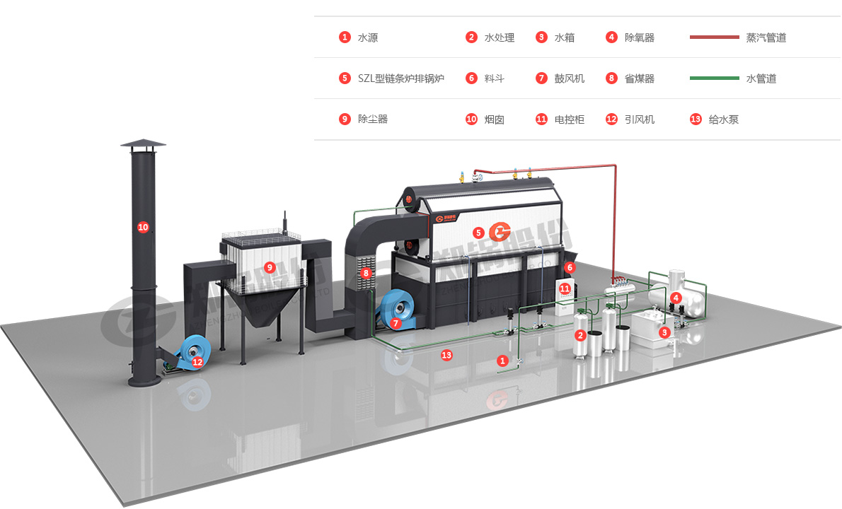常用噸位:10噸szl鍋爐、15噸szl鏈條爐排鍋爐、20噸SZL鏈條爐排蒸汽鍋爐、25噸szl雙鍋筒鏈條燃煤鍋爐